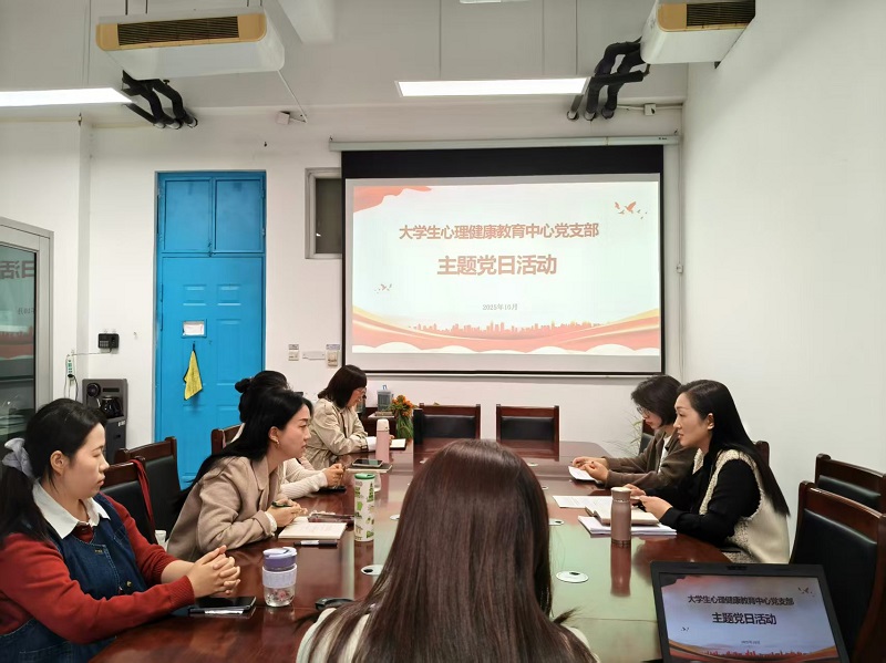 2025年10月16日下午,大学生心理健康教育中心党支部在龙子湖校区尚严楼225会议室开展十月份主题党日活动。活动由党支部书记张颖主持,全体党员参加。