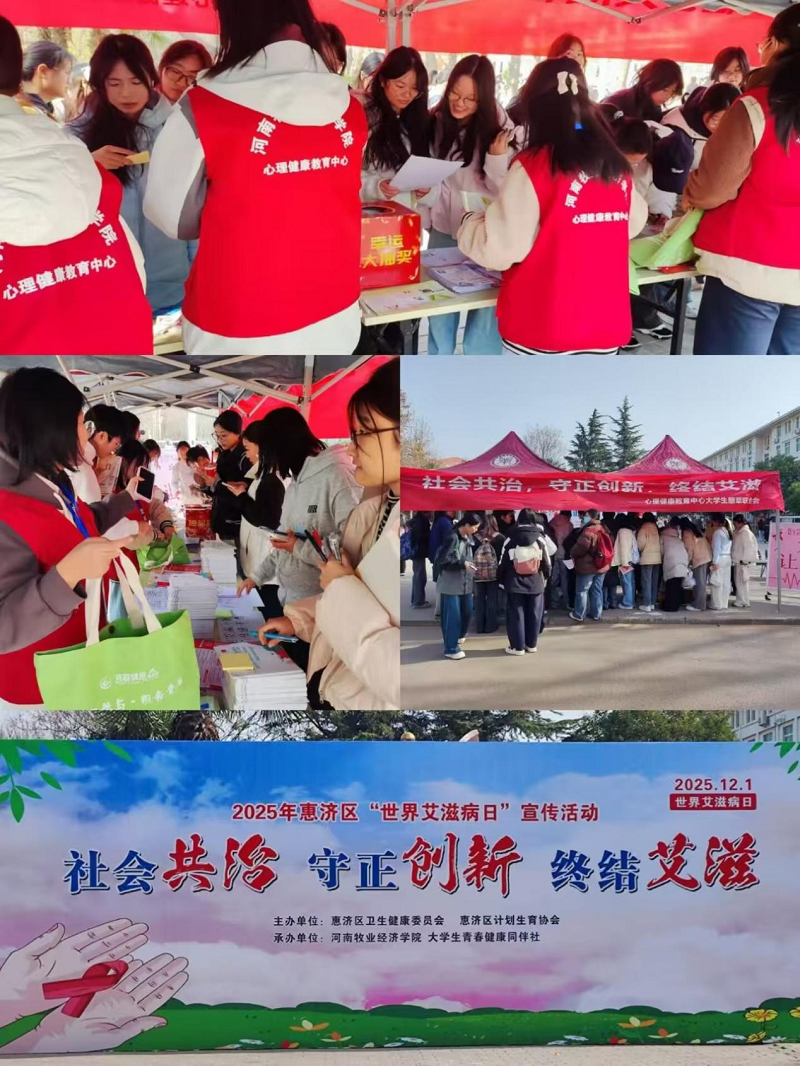 心理中心受邀参加了由河南省疾控局、河南省疾病预防控制中心及郑州市疾病预防控制中心联合主办的河南省“世界艾滋病日”主题宣传活动。本次活动主会场在河南中医药大学,心理中心宣教部教师吕若源带领我校5名同学充分参与并积极展示了我校防艾工作的成果。