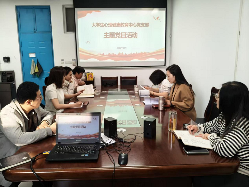 2025年12月15日,心理健康教育中心党支部在龙子湖校区尚严楼225会议室开展主题党日活动,党支部书记张颖主持,全体党员参加。